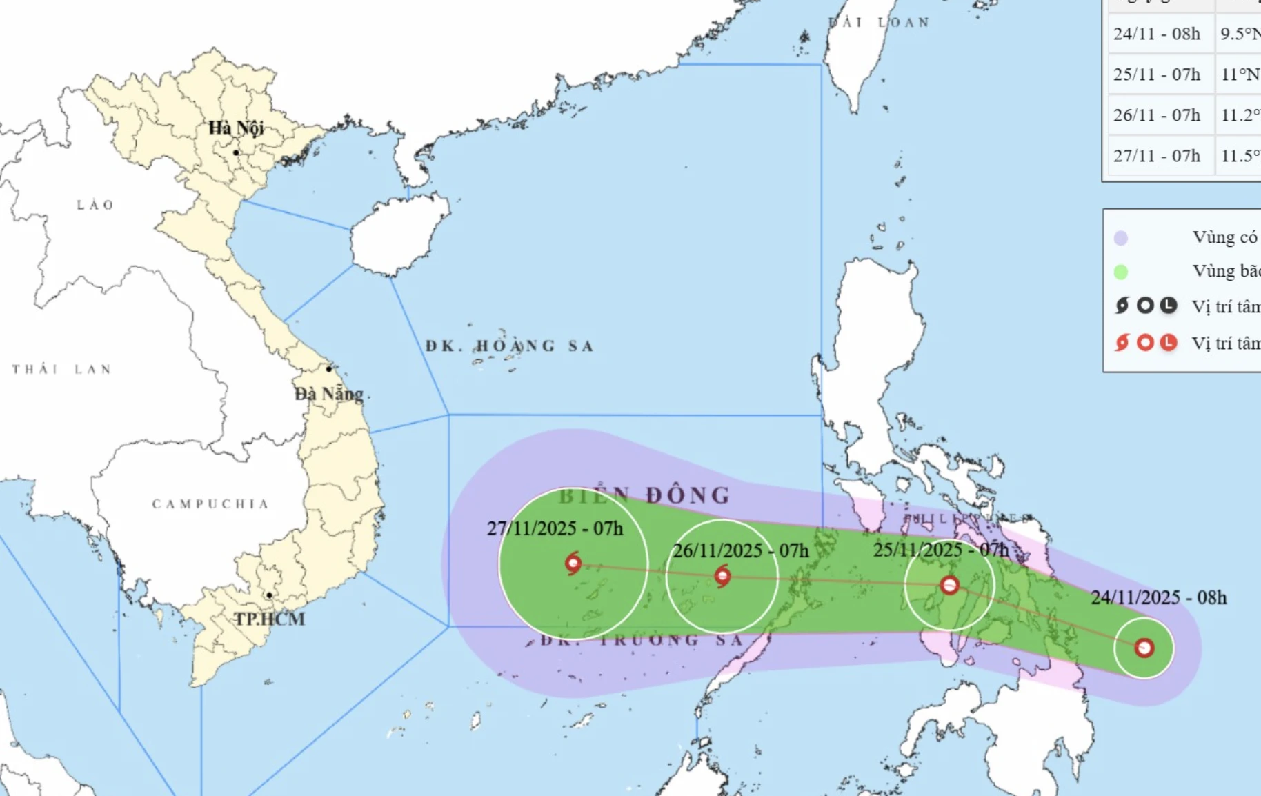 Dự báo rạng sáng 26/11, bão số 15 sẽ đi vào Biển Đông, có thể hướng về phía Nam Trung Bộ và Nam Bộ nước ta.